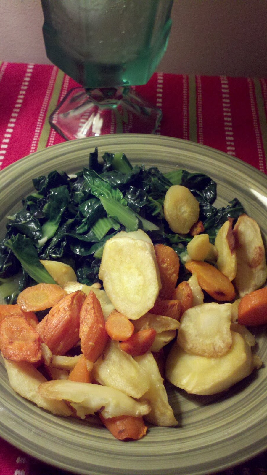 | Roasted parsnips and carrots; sauteed tatsoi |